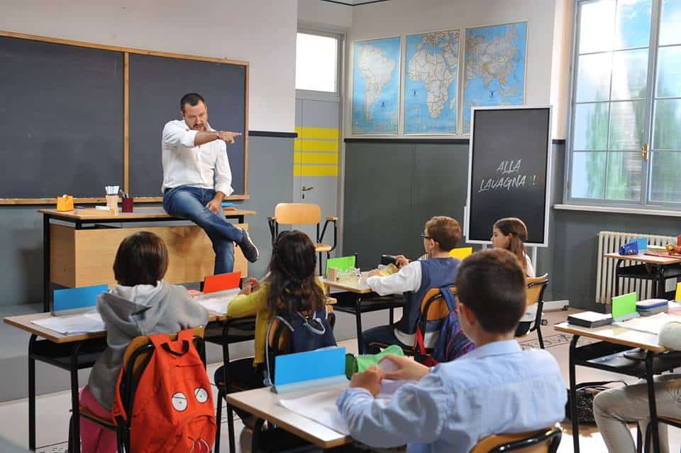 Circondato da piccoli studenti, intento a rispondere alle loro domande ma anche a dare lezioni di sovranismo. Gessetto alla mano, Matteo Salvini inaugura la prima puntata di ‘Alla Lavagna’, nuovo format di Rai3 che vede personaggi della politica, del giornalismo e dello spettacolo bersagliati da quesiti e curiosità di una classe di diciotto bambini tra i 9 e i 12 anni. Primo ospite – in settimana attesi anche Rita Dalla Chiesa, Danilo Toninelli, Milena Gabanelli e Antonio Di Pietro -, il ministro dell’Interno ha colto l’occasione per spiegare ai piccoli temi come razzismo, immigrazione e Europa. Ma quale è stata la reazione del pubblico? Con 1.594.000 spettatori, pari al 6.4% di share, la trasmissione sembra essere partita bene. Almeno finché si parla di dati Auditel. Perché nei commenti ai post di Rai3 e su Twitter, la storia cambia. Spinti dalla curiosità di vedere il ministro all’opera, in tantissimi si sono infatti sintonizzati sul debutto del format per poi emettere sui social un verdetto pressoché unanime e impietoso: la puntata, scrivono, si riassumerebbe come “pura propaganda in stile Istituto Luce”.