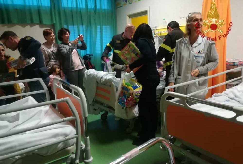 Nel pomeriggio di ieri i Vigili del Fuoco della caserma di Marina di Cerveteri unitamente al personale di Polizia di Stato, sono stati impegnati presso l’ospedale pediatrico Bambin Gesú di Palidoro nell’ambito della giornata solidale ADMI. Hanno regalato ai bambini ricoverati, un momento di svago e spensieratezza, consegnando loro, doni offerti dal Ministro dell’Interno.