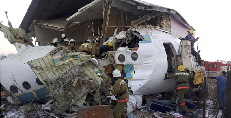 E’ di 12 morti e 60 feriti il bilancio provvisorio dello schianto in Kazakistan di un aereo, con 100 persone a bordo, poco dopo il decollo da Almaty. Sul velivolo, diretto alla capitale Nur-Sultan (ex Astana), viaggiavano 95 passeggeri e 5 membri d’equipaggio. L’aereo della Bek Air ha perso altitudine alle 7:22 ora locale (le 2:22 in Italia), prima di colpire una barriera di cemento e schiantarsi contro un edificio a due piani. L’aeromobile è stato identificato come un Fokker-100, un aereo di linea di medie dimensioni a doppia turboventola. Tutti i voli della Bek Air e di Fokker-100 in Kazakistan sono stati sospesi in attesa delle indagini sull’incidente, hanno affermato le autorità del Paese.