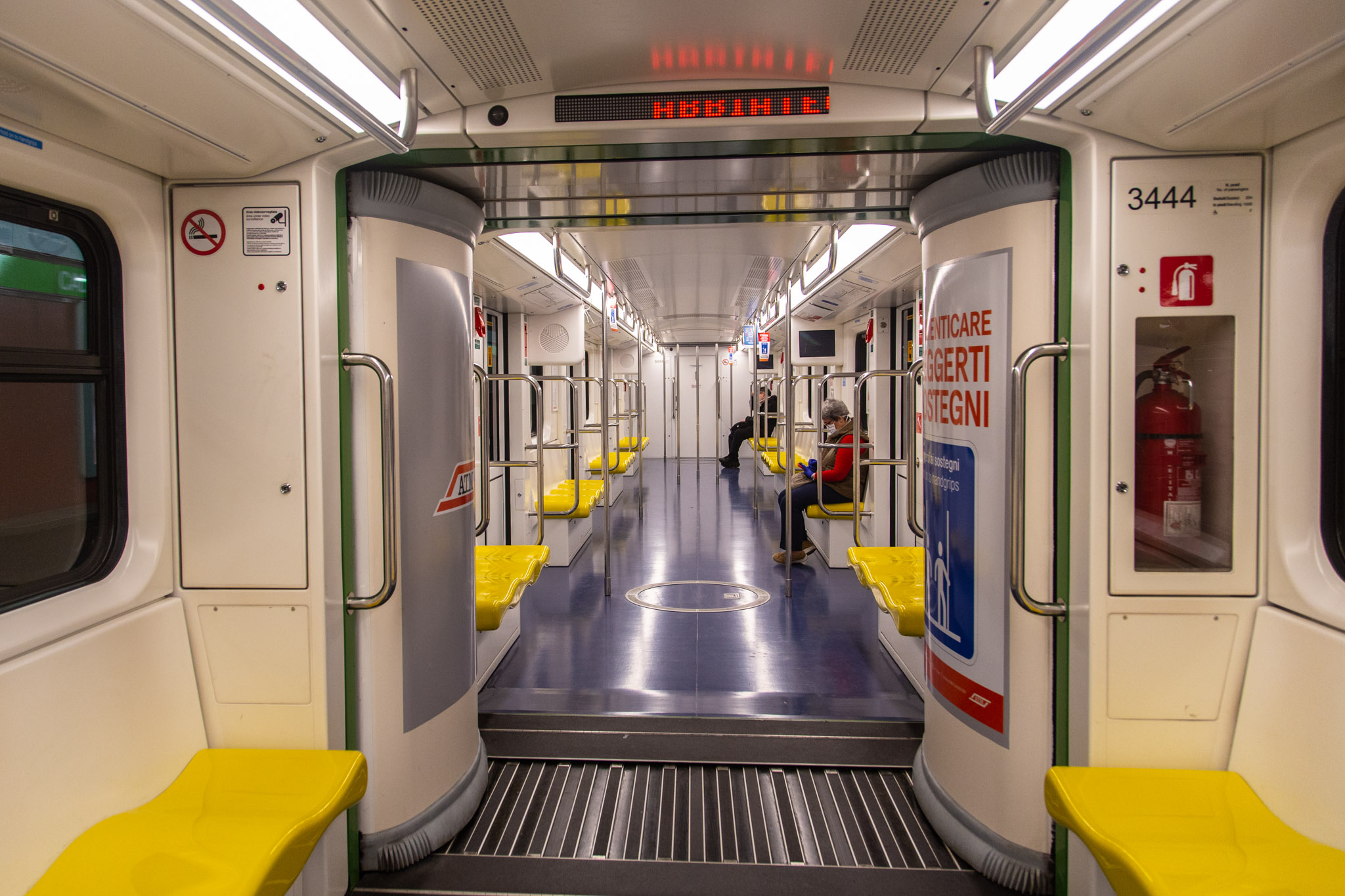 Coronavirus, sulla metro di Milano già applicati i cartelli per il distanziamento sociale
