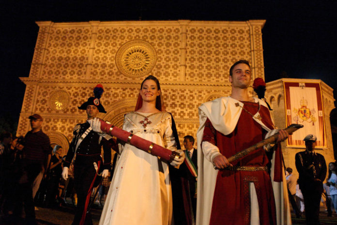 “Il Comitato intergovernativo della Convenzione Unesco 2003 ha iscritto la ‘Festa del perdono celestiniano’ nella lista rappresentativa del patrimonio culturale immateriale dell’umanità su proposta dell’Italia”: è quanto si legge sul certificato Unesco consegnato alla comunità aquilana davanti alla basilica di Santa Maria di Collemaggio, prima dell’accensione del tripode della pace, momento che segna l’avvio ufficiale della Perdonanza Celestiniana, giunta all’edizione 726. E la pacificazione è uno degli elementi che tacitamente emerge tra quelli che hanno consentito “alla comunità di detentori e praticanti” di ottenere l’iscrizione, nel dicembre 2019, nella Lista Rappresentativa della Convenzione Unesco 2003, “per un ciclo festivo, dal 16 al 29 agosto, che ha un fondamento storico secolare a valenza culturale e spirituale”. Un elogio al fatto che sia stato adottato un codice di condotta etico per prevenire l’impatto turistico proprio nel rispetto della pratica rituale e spirituale, come riporta la decisione dell’Organo di valutazione internazionale. La Festa della Perdonanza Celestiniana, nel riconoscimento Unesco, è tutt’altro che folklorizzazione e spettacolarizzazione e va ben oltre il concetto di rievocazione storica. E della ‘Festa’ è parte integrante il ‘Fuoco del Morrone’ con il suo ‘Cammino del Perdono’: sulle orme di Pietro Angelerio futuro Celestino V, che nel 1294 percorse 80 chilometri attraversando 23 villaggi della provincia aquilana da Sulmona a L’Aquila, è uno dei momenti che meglio rende il senso di comunità e appartenenza.