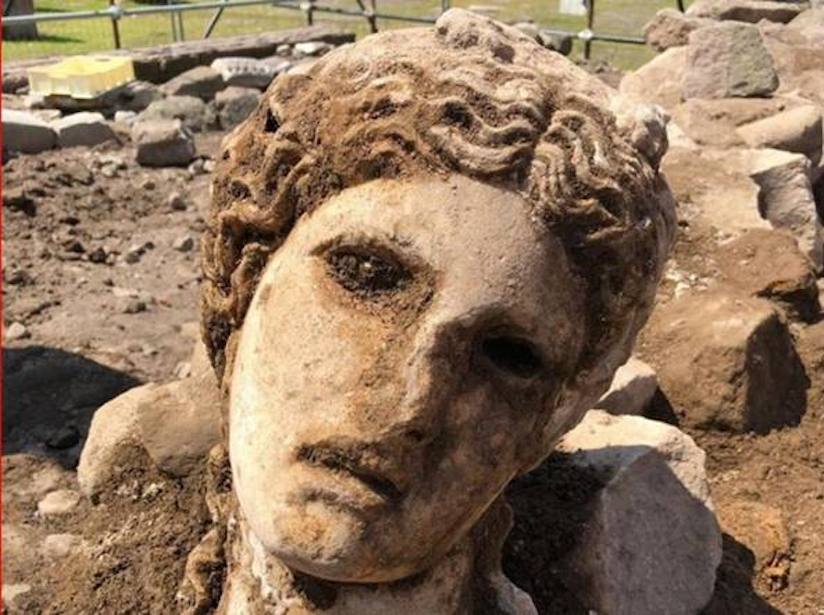 Una testa di età imperiale del dio Dioniso, una seconda testa dell’imperatore Augusto sempre di epoca imperiale in età giovanile mai mostrata al pubblico. E poi oltre 60 frammenti del Fregio d’Armi del Foro di Traiano, che rappresentano le spoglie belliche dei popoli vinti e quelle dei vincitori, e un frammento di fregio storico in marmo bianco a grana fine, inquadrabile cronologicamente tra il I e il II secolo d.C.: arrivano direttamente dal sottosuolo del primo tratto di via Alessandrina alcuni incredibili tesori della Roma antica, rinvenuti nello scavo archeologico appena concluso e illustrato oggi in diretta streaming alla presenza della sindaca Virginia Raggi, grazie al quale è tornata alla luce una nuova porzione dei Fori Imperiali. Con questa opera, curata da Roma Capitale, Assessorato alla Crescita culturale – Sovrintendenza Capitolina ai Beni Culturali su concessione del Ministero per i Beni e le Attività Culturali e per il Turismo – Parco Archeologico del Colosseo e resa possibile grazie al contributo della Repubblica dell’Azerbaigian (per un importo complessivo di 1.000.000 di euro), finalmente con un unico sguardo si potrà ammirare la piazza del Foro di Traiano con il complesso monumentale dei Mercati di Traiano. Gli scavi hanno riguardato il tratto settentrionale, lungo circa 60 metri e ora rimosso, della via Alessandrina che collegava l’attuale piazza del Foro di Traiano a largo Corrado Ricci: i preziosi reperti emersi dopo il lavoro, adesso in fase di restauro e studio, saranno poi esposti al Museo dei Fori Imperiali ai Mercati di Traiano. “Abbiamo un tesoro preziosissimo nascosto sotto i nostri piedi, continuiamo ad aprire questo scrigno e a mostrare al mondo frammenti della nostra identità. Roma è patrimonio dell’umanità”, ha detto oggi la sindaca Raggi, “questo lavoro ci dà speranza, dobbiamo continuare a guardare al futuro con fiducia: ora siamo in era covid, ma chi lavora in questo settore deve avere una nuova spinta e deve essere sostenuto”.