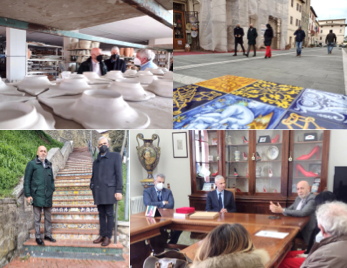 Rilanciare il legame tra i due centri dal punto di vista del marketing territoriale, dei flussi turistici e della cultura: è l’obiettivo della visita che il Sindaco di Civitavecchia, Ernesto Tedesco ha svolto a Deruta, su invito del sindaco, Michele Toniaccini. Nell’occasione, Tedesco è stato accompagnato da Toniaccini in alcune delle celebri botteghe artigiane del borgo umbro (inserito nel circuito dei “Borghi più belli d’Italia”, oltre che in “Terre e musei” e ne “La Strada della Ceramica Umbra”), dove ha potuto toccare con mano la filiera della ceramica. Ha visitato inoltre l’Antica Fornace Grazia, il Museo Regionale della Ceramica e gli scavi delle fornaci medievali, oltre ad altri luoghi simbolo della città. Infine, ha incontrato una delegazione del Comitato degli Artigiani di Deruta e del consiglio comunale: in quella sede si è stabilito di riprendere gli accordi stipulati nell’accordo del 2018 “Il litorale di ceramica”, per la realizzazione del programma strategico di sostegno al rilancio e lo sviluppo dei territori e dei distretti produttivi locali, e di aggiornarli con azioni concrete, a partire dai prossimi mesi. “Intendiamo rafforzare – afferma il sindaco Toniaccini – questi importanti legami fra le due Amministrazioni, con iniziative concrete già dai prossimi mesi, con il duplice scopo di rivitalizzare il centro storico di Civitavecchia, meta di tanti visitatori legati anche al traffico crocieristico, attraverso eventi legati all’arte; e dall’altro, far conoscere ulteriormente la ceramica artistica derutese”. Commenta il Sindaco Tedesco: “Riallacciare il rapporto nato pochi anni fa, durante la passata amministrazione Cozzolino, rappresenta una reciproca occasione di crescita per Deruta e Civitavecchia e l’intenzione mia e del collega Toniaccini è farlo in tempi brevi e su basi di assoluta concretezza. L’obiettivo è di poter presto ospitare gli amici di Deruta per far conoscere le loro creazioni ai civitavecchiesi e a quanti visitano la nostra città, a cominciare dai flussi turistici che stanno lentamente riprendendo. Se l’Umbria è il cuore verde d’Italia, Deruta è il cuore sgargiante dell’Umbria, con i colori delle sue maioliche. Civitavecchia deve quindi essere lo sbocco al mare che manca alla Regione Umbria e l’Umbria sarà il polmone che a Civitavecchia manca, in senso di sviluppo imprenditoriale, infrastrutturale e mi verrebbe da dire anche ambientale, avendo potuto conoscere quello splendido territorio. Lavoreremo per questo”.