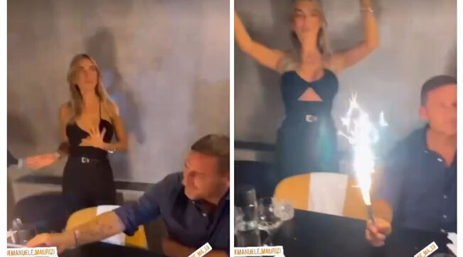 Francesco Totti esce allo scoperto sui social e pubblica il primo video insieme a Noemi Bocchi. Sceglie il giorno prima dell’apertura del processo nella causa di separazione da Ilary Blasi per ufficializzare con i follower la sua relazione con la bionda pariolina 34enne che frequenta da Capodanno. Una mossa che lascia di stucco, ma che l’ex capitano fa insieme ai suoi più cari amici che tagga nel video insieme a Lady Noemi. Lei balla e ancheggia al suo fianco, lui sorride sornione. Francesco Totti, 46 anni, si è stancato di vedere le sue immagini rubate sui giornali di gossip che immortalano ora il bacio a Noemi Bocchi, ora la fuga sotto casa sua, ora l’anello che entrambi portano al dito. E’ lui a pubblicare sui social un video di una bella festa tra balli e canti scatenati con gli amici più cari. Una tavolata di divertimento dove al centro c’è proprio Francesco Totti che si lascia immortalare da Alex Nuccetelli che ripete: “Ci siamo”. Al suo fianco c’è Noemi Bocchi che balla sensuale. Indossa un abito che mette in risalto il décolleté e la sua silhouette sexy e sinuosa; ha i capelli sciolti e si dimena a ritmo di musica lanciando qua e là occhiate al suo amore. Totti è seduto e sorride sornione, felice di essere ripreso finalmente con la sua nuova fiamma. L’ex calciatore posta il video sui social e tagga tutti gli amici presenti, tra cui Alex Nuccetelli, Giancarlo Pantano ed Ezio Apolloni. Mette il tag anche alla sua Noemi. Casualmente e improvvisamente hanno tutti il profilo privato. Solo sull’Instagram di Francesco Totti si può vedere il breve ma significativo filmato.