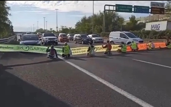 Undici militanti dell’organizzazione ambientalista Ultima Generazione hanno bloccato per circa 30 minuti l’uscita 12 del Gra. Con la protesta gli attivisti hanno voluto “portare nuovamente alla politica la richiesta di interrompere gli investimenti in combustibili fossili e di accelerare sulle rinnovabili”. Per la prima volta ha partecipato all’azione Maria Letizia Ruello, ricercatrice in scienze e tecnologie dei materiali presso l’Università Politecnica delle Marche. “Mi occupo di studiare le interazioni tra i materiali e l’ambiente. Ho molta fiducia nella scienza e so bene quanto ha fatto e sta facendo per offrire soluzioni alla crisi eco-climatica. Ma ora l’unica scienza che ci può aiutare è quella che ci dia un metodo per convincere i governi a fare la loro parte. Quando sono in aula guardo i miei giovani studenti e penso che sono l’ultima generazione che può fare qualcosa. Da parte mia non basta più studiare e cercare soluzioni tecnologiche: mi sembrerebbe di perdere tempo. Per questo ho deciso di unirmi alla resistenza civile nonviolenta e di sostenere le richieste di Ultima Generazione”.