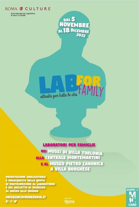Un’idea di museo come spazio aperto a sostegno di un concetto di apprendimento alternativo basato non solo sull’esperienza individuale ma allargato anche alla condivisione familiare. Su questo ruota Lab For Family, il progetto didattico promosso da Roma Culture, Sovrintendenza Capitolina ai Beni Culturali e realizzato da Zètema Progetto Cultura, in programma ogni fine settimana dal 5 novembre al 18 dicembre. Otto appuntamenti che porteranno le attività didattiche interattive all’interno di quattro musei del sistema Musei Civici: il Casino nobile e la Casina delle civette dei musei di Villa Torlonia, la Centrale Montemartini e il museo Pietro Canonica. Sedi del vasto patrimonio storico artistico della città, in cui si custodiscono tesori preziosi e aneddoti senza tempo, gli spazi coinvolti diverranno luoghi d’eccezione aperti a nuove avventure, esperienze, giochi da vivere in famiglia. A comporre la platea ideale dell’ampia programmazione intergenerazionale, saranno infatti nonni e nipoti, genitori e figli, chiamati finalmente a vivere l’esperienza didattica fianco a fianco, con un dialogo profondo tra le rispettive conoscenze e la condivisione di emozioni differenti.