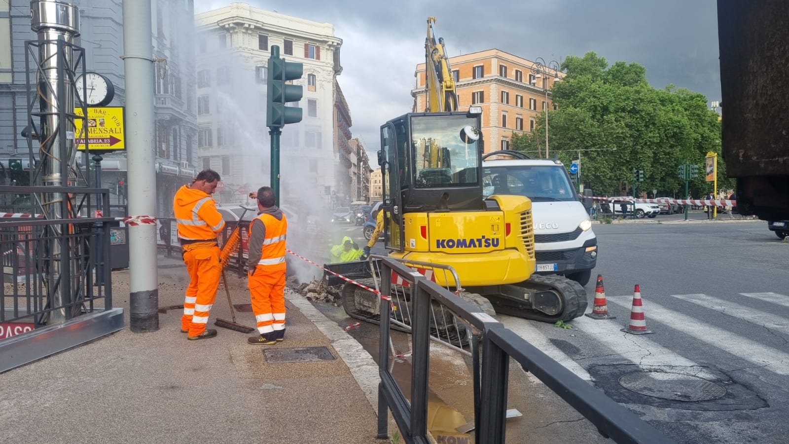 Roma, rottura di una tubatura dell’acqua in piazza Fiume