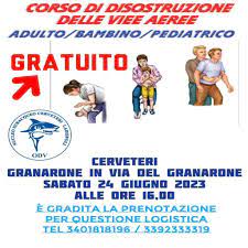 In caso di soffocamento, una manovra può salvare una vita, ma bisogna conoscerla e sapere come effettuarla. Per questo, il Nucleo Subacqueo Cerveteri Ladispoli ha deciso di proporre un’importante iniziativa che avrà luogo sabato 24 giugno, alle ore 16:00, al Granarone di Cerveteri. I membri dell’associazione hanno organizzato un corso gratuito di disostruzione delle vie aeree rivolto a tutta la cittadinanza. Durante il corso, verranno trattate le diverse manovre anti-soffocamento che variano a seconda dell’età della persona da soccorrere. Per poter partecipare è preferibile prenotarsi ai numeri: 3401818196 e 3392333319
