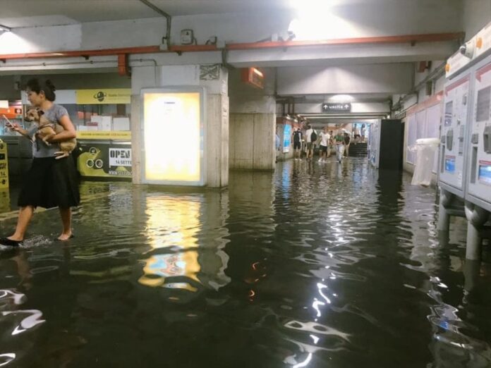 Un violento nubifragio ha colpito la zona dei Monti Lepini e in particolare Sezze, in provincia di Latina tra le 15.30 e le 16. La grande quantità d’acqua caduta in poco tempo (secondo alcune stime 100 millimetri in 70 minuti) ha causato allagamenti e disagi soprattutto in località Casali e Fontanelle, quelle situate più in basso. Il sindaco Lidano Lucidi ha invitato la popolazione a non uscire di casa. Chiuso al traffico un ponte, alcuni smottamenti si sono verificati lungo la strada d’accesso al comune, via Ninfina. Molte auto sono rimaste bloccate in strada. Nel video alcune delle immagini che hanno rapidamente fatto il giro dei social. In serata un violento temporale su è abbattuto sulla capitale, creando disagi al traffico che è andato in tilt, strade allagate e chiusura delle fermate della metro A Furio Camillo e Manzoni. Nella giornata odierna tutto è tornato alla normalità. Le squadre della Protezione civile e gli operai del comune sono al lavoro e il sindaco ha riunito urgentemente il COC, il Centro operativo comunale. “Ora la situazione è in miglioramento”, dice al Tgr Lazio lo stesso primo cittadino nel video seguente.