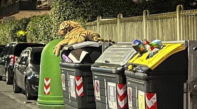 Cosa ci fa una tigre a guardia dei bidoni della spazzatura? E’ forse il tentativo di risolvere l’ultima emergenza rifiuti a Roma? Tanto lo spavento che ha colto i residenti di Montespaccato, tra via di Boccea e via Aurelia, che si sono ritrovati l’animale “adagiato” sul cassonetto dell’indifferenziata a scrutare i passanti. Poco dopo, svelato l’arcano. Si trattava di un peluche di grandi dimensioni del quale qualcuno ha voluto sbarazzarsi, conferendolo in strada con l’altra spazzatura. La foto, pubblicata sulla pagina Facebook di The Roman Post, è diventata virale. Quando la foto della tigre sui bidoni della spazzatura a Roma ha iniziato a fare il giro del Web non sono tra l’altro mancati commenti ironici, indirizzati soprattutto all’Ama, la municipalizzata che gestisce la raccolta dei rifiuti nella Capitale. “La tigre dell’AMAlesia” e “AMA-zzonia”, tra i tanti. E ancora “per tenere lontano i cinghiali”, “Le strisce zebrate e i cassonetti tigrati”.