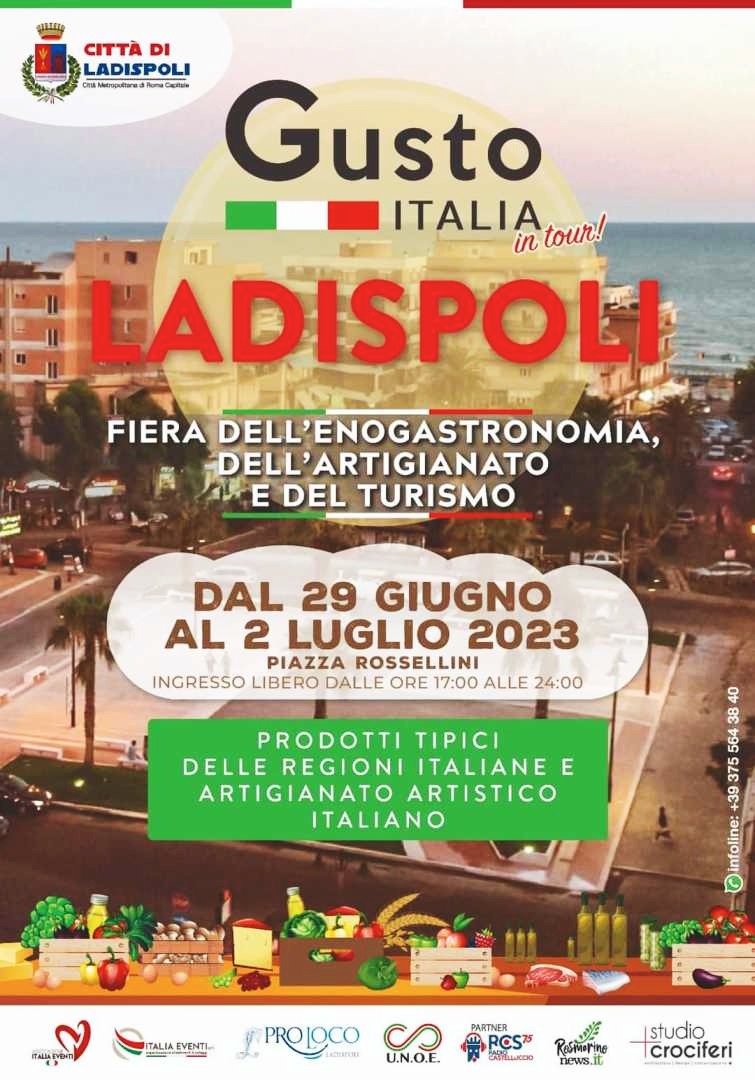 Patrocinata dal Comune di Ladispoli, grazie al sindaco Alessandro Grando, l’evento è firmato dall’Associazione Italia Eventi e gode del patrocinio dell’UNOE, l’Unione Nazionale Organizzatori di Eventi. Preziosa la presenza e la collaborazione della Pro Loco di Ladispoli, presieduta da Claudio Nardocci. “Torniamo da tre anni qui, alle porte di Roma, felici di continuare a raccontare l’Italia del gusto e del saper fare. Ladispoli è una cittadina ricca di suggestioni e di tipicità, una cornice che si sposa sempre perfettamente con i produttori e gli artigiani di Gusto Italia. Ambasciatori di sapori e territori che, assieme a noi, danno vita ad occasioni preziose di scoperta e conoscenza reciproca”, spiega Giuseppe Lupo, presidente di Italia Eventi.