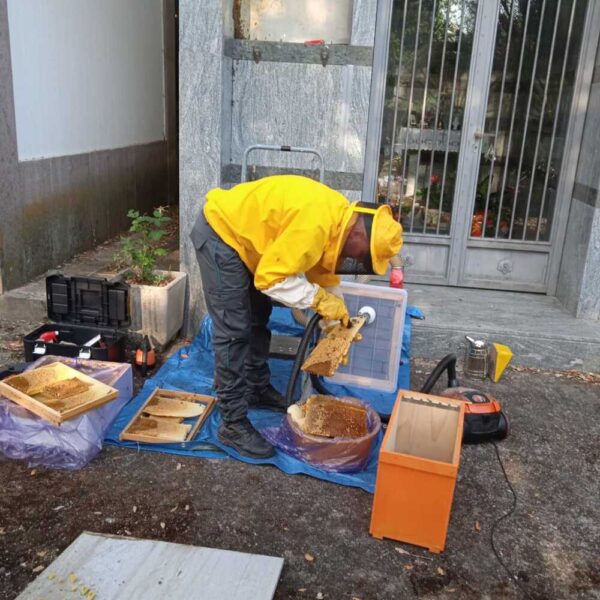 Un favo da migliaia di api è stato trovato al cimitero di Cerveteri e rimosso in sicurezza dalle guardie ecozoofile di Fare Ambiente. Condizioni perfette per gli insetti che hanno proliferato ma ora sono in un posto più sicuro e confortevole per produrre il miele. “Il riposo eterno (delle api). È quello che ha disturbato il nostro agente del NUBI (Nucleo d’Urgenza Bonifica Insetti) nell’ultimo intervento. Un luogo particolare ma non nuovo a questi recuperi è il cimitero di Cerveteri, dopotutto se è un luogo di pace per i defunti lo è anche per le api, che come dimostrano i numerosi favi in foto, però sono più che vive e laboriose. Come sempre la meraviglia della natura stupisce con le sue opere, soprattutto quando si fondono con le opere dell’uomo come in questo caso una cappella mortuaria. L’importante però è stato ristabilire la quiete per i cittadini che facevano visita ai loro cari, garantendo al contempo la salvaguardia di questi insetti tanto piccoli quanto essenziali per l’ecosistema. Un altro intervento riuscito e gratuito per la cittadinanza”.
