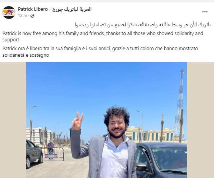 “Patrick” Zaki “ora è libero tra la sua famiglia e i suoi amici, grazie a tutti coloro che hanno mostrato solidarietà e sostegno”. E’ quanto si legge in un messaggio in inglese, arabo e italiano sulla pagina Facebook ‘Patrick Libero’ dedicata agli aggiornamenti sul caso Zaki. Nel post viene pubblicata una foto di Zaki sorridente che fa il segno della vittoria con la mano destra alzata. “Sono finalmente libero, sono impaziente di tornare a vivere e spero presto di tornare in Italia“. Così ai microfoni della Rai Patrick Zaki, dopo il suo rilascio dalla stazione di polizia di Mansoura. Dopo la condanna a tre anni di carcere “ero un po’ depresso – ha detto – sono stati giorni intensi, ma per fortuna ora sono libero”. Zaki ha ringraziato “la città di Bologna, il rettore dell’Università, i cittadini di Bologna, una comunità di cui mi sento fortunato a fare parte, perché sono ormai anni che si occupano” del caso. E poi ha ringraziato “i diplomatici per il dialogo a livello internazionale che hanno intavolato e tutti coloro che in questi giorni mi sono rimasti accanto, facendo grande sforzi per ridarmi la libertà”. La grazia concessa dal presidente egiziano Abdel Fatah al Sisi, arrivata all’indomani della condanna a tre anni di carcere da un Tribunale di Mansoura per aver diffuso presunte notizie false in un post sulle minoranze copte, ha sancito la fine di un incubo durato tre anni. Nel post su facebook viene pubblicata una foto di Zaki sorridente che fa il segno della vittoria con la mano destra alzata. La stessa immagine diffusa su Twitter da Hossam Bahgat, attivista per i diritti umani, direttore dell’Eipr (Egyptian Initiative for Personal Rights). “Patrick in strada”, twitta Bahgat all’indomani della notizia della grazia concessa a Zaki dal presidente egiziano Abdel Fattah Al Sisi. “Patrick Zaki ha oggi ricevuto la grazia dal presidente della Repubblica egiziana e voglio ringraziare il presidente Al Sisi per questo gesto molto importante. Fin dal nostro primo incontro a novembre – ha spiegato la premier -, io non ho mai smesso di porre la questione e ho sempre riscontrato da parte sua attenzione e disponibilità. E voglio ringraziare l’intelligence e i diplomatici, sia italiani che egiziani, che in questi mesi non hanno mai smesso di lavorare per arrivare alla soluzione auspicata. Domani (oggi, ndr) Patrick Zaki tornerà in Italia e gli auguro dal profondo del mio cuore, una vita di serenità e di successo”, le parole della premier Giorgia Meloni ieri annunciando il ritorno in Italia dello studente dell’Alma Mater di Bologna.