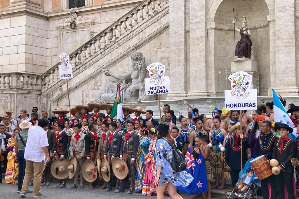 196 Paesi per un unico grande Festival del Folklore in viaggio per tutta l’Europa. Nella mattinata di venerdì 28 luglio la tappa romana della manifestazione, in Piazza del Campidoglio. Organizzato da Moonlight Events con il patrocinio di tutte le municipalità in cui viene ospitato, il Festival ha visto l’esibizione di numerosissimi gruppi coreografici con stili di canto e danza diversi.