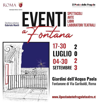 Eventi a Fontana: continua l’appuntamento presso i Giardini dell’Acqua Paola, in via Garibaldi. È ancora in corso l’iniziativa intrapresa dall’associazione culturale Il Posto delle Fragole, vincitrice del bando municipale Tempo d’estate, nella gestione degli spazi dei Giardini dell’Acqua Paola, grazie alla concessione della Sovrintenza Comunale, ente gestore del bene. La proposta culturale permette di tenere aperto lo spazio dei Giardini, normalmente chiusi al pubblico, dalla mattina alla sera, con una serie di eventi.
