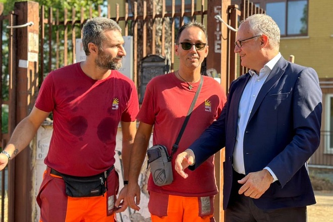 Dopo il XIII Municipio, il Piano Scuole Ama fa tappa in XII Municipio dove il Sindaco Gualtieri ha effettuato un sopralluogo, insieme al Direttore Generale Ama Alessandro Filippi.  Il primo cittadino ha seguito le operazioni di pulizia previste all’Istituto ‘Parco Flora’ al Portuense, anticipando che Ama riattiverà la modalità integrata di pulizia, raccolta e diserbo, rendendola strutturale.  “L’impegno di Ama prosegue su tutti i fronti – ha dichiarato Gualtieri – non solo per uscire dalla crisi dei mezzi e riportare la raccolta rifiuti a un livello ordinario ma anche per migliorare la qualità della pulizia della città in modo granulare, con interventi a carattere integrato e organico”. “Le scuole davanti a cui interverremo – ha sottolineato il Sindaco – sono più di 950; ogni giorno ne puliamo una novantina in parallelo, così da arrivare all’apertura dell’anno scolastico con una situazione di decoro. Non si tratta di uno spostamento dalle attività ordinarie, ma di un’azione specifica. L’azienda ha comunicato attività aggiuntive che diventeranno permanenti, come quelle sulle scuole e le consolari”. “Avere una unicità di gestione delle attività sullo stesso fronte è evidentemente efficiente ed efficace. Svolgere insieme pulizia e diserbo porta a un miglioramento costante delle strade. È su questo fronte che ci stiamo muovendo con le diverse azioni che abbiamo messo in campo” ha spiegato il Dg di Ama Alessandro Filippi. Il Piano scuole è parte del piano più grande di coordinamento delle attività di diserbo e pulizia al quale si aggiungeranno le attività sulle foglie e sulle consolari. “Stiamo camminando verso un’azienda che pianifica, programma e misura i risultati; – ha sottolineato ancora Filippi – pianificare ci consente di efficientare i servizi. Oggi è il quarto giorno del Piano Scuole, quindi parliamo di circa 300 interventi effettuati finora nei diversi municipi e in diverse situazioni. Lunedì eravamo in XIII municipio e lì era necessario intervenire anche sulla pulizia del parco adiacente, sulla rimozione dei rifiuti, e abbiamo anche sanificato un parco giochi. È stato un intervento variegato ma con modello integrato. Arriviamo di fronte alle scuole con tutte le componenti e lasciamo in condizioni ottimali lo spazio circostante”.