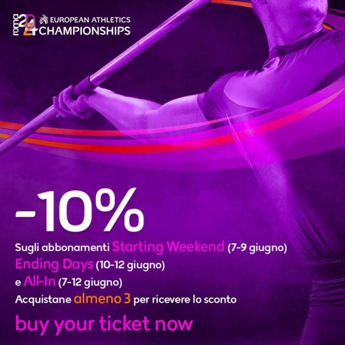 Con l’inizio di settembre partono le nuove promozioni per i Campionati Europei di Atletica Leggera di Roma, in programma dal 7 al 12 giugno del 2024 allo Stadio Olimpico. La Fondazione EuroRoma 2024, che organizza l’evento, ha annunciato oggi che i bambini fino a 6 anni di età potranno entrare gratis allo stadio. Inoltre, a meno di un mese dall’apertura delle candidature, sono già arrivate circa mille richieste per il progetto Roma 2024 Volunteers, che vedrà tanti giovani protagonisti nelle diverse aree funzionali legate all’organizzazione dell’evento. Con l’obiettivo di accogliere un maggior numero di appassionati di atletica e di famiglie allo stadio, la Fondazione EuroRoma 2024 ha attivato anche ulteriori promozioni per la vendita dei biglietti e degli abbonamenti. Da oggi sono disponibili gli abbonamenti per tre giornate (Starting Weekend ed Ending Days) e chi comprerà almeno tre biglietti per le sessioni serali o tre abbonamenti otterrà uno sconto del 10% su tutti i titoli d’accesso acquistati.