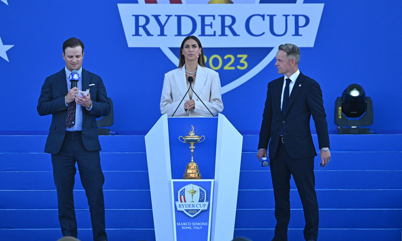 Il sorvolo delle Frecce Tricolori sul Marco Simone Golf & Country Club di Guidonia ha salutato la cerimonia inaugurale della 44ma edizione della Ryder Cup, la sfida di golf tra Europa e Stati Uniti che per la prima volta si disputa in Italia. Domani alle 7,35 si parte con il ‘foursome’ al centro della prima delle tre giornate di gare articolate su 28 incontri. La presentazione dell’evento più importante del golf, tutta rigorosamente in inglese, è stata affidata a Melissa Satta mentre l’artista britannico Carly Paoli ha cantato l’inno di Mameli. La Ryder, comparabili per il golf a quello che è il Mondiale per il calcio o un’Olimpiade per altri sport, è un evento di portata mondiale: ai 50mila spettatori che fino a domenica varcheranno i cancelli dell’esclusivo circolo a est di Roma, vanno aggiunte le decine di milioni che lo seguiranno in tv. Nella Città Eterna i maggiori hotel hanno da tempo registrato il tutto esaurito per questo ultimo weekend di settembre. La Ryder si apre con il ‘foursome’ per il quale sono stato già decisi gli accoppiamenti: la coppia europea Rahm-Hatton che affronterà quella Usa Scheffler-Burns, poi Hovland e Aberg contro gli statunitensi Homa e Harman, Lowry e Straka contro Fowler e Morikawa e infine McIlroy e Fleetwood se la vedranno con Schauffele e Cantlay. I due capitani, Luke Donald per il Team Europe e Zach Johnson per il Team Usa, hanno presentato le rispettive squadre che si fronteggeranno fino a domenica con il Vecchio Continente che proverà a riportare il trofeo da questo lato dell’Atlantico. Acclamatissimi i due vicecapitani non giocatori italiani, i fratelli Francesco ed Edoardo Molinari, mentre il capitano Donald ha assicurato che i giocatotri europei “sono impavidi e motivati”. “È un privilegio per il nostro team essere qui”, ha sottolineato il capitano statunitense Johnson, 47enne golfista originario dell’Iowa che nel ringraziare per “l’incredibile ospitalità” ricevuta ha sottolineato il rapporto tra Italia e Stati Uniti, “legati da una meravigliosa storia che si estende attraverso gli oceani”. “È un evento straordinario, siamo emozionati”, ha dichiarato nel suo intervento il sindaco di Roma, Roberto Gualtieri, “gli occhi di tutto il mondo sono puntati su Roma, non solo quelli dei tanti appassionati di golf. Si annuncia un torneo spettacolare, che batterà ogni record”. Grande l’entusiasmo dei tifosi, più mediterranei che ‘british’ per la loro rumorosità, e un ricchissimo e ricchissimo parterre di ospiti nel Village della Ryder: i ministri per lo Sport, Andrea Abodi, e del Turismo, Daniela Santanchè, il presidente del Coni, Giovanni Malagò, e quello della Federgolf, Franco Chimenti, Novak Djokovic e Carlos Sainz reduci dall’All Star Match di mercoledì.