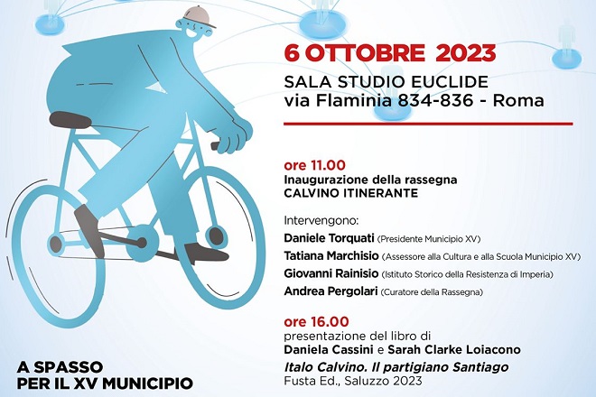 Organizzata dal Municipio XV, con la collaborazione di Biblioteche di Roma e il prezioso supporto di numerose associazioni e realtà del territorio, tra cui l’Associazione Il Rinoceronte, CRT Scenamadre, PuntoCritico, Teatro dell’Ascolto, Officina Pasolini, Istituto storico della Resistenza di Imperia e Anpi – Martiri de La Storta, la manifestazione sarà presentata alla stampa il prossimo 6 ottobre alle 11.00 presso la Sala Studio Euclide di Via Flaminia 834. Sempre il 6 ottobre, questa volta alle 16.00, alla Sala Studio Euclide, il primo appuntamento con la presentazione del volume “Italo Calvino. Il Partigiano Santiago”.Sabato 7 ottobre invece al Teatro Le Sedie di Labaro, Via Veientana Vetere 51, a partire dalle 18.00 “La Maratona Calvino – Mondi reali e mondi possibili”.