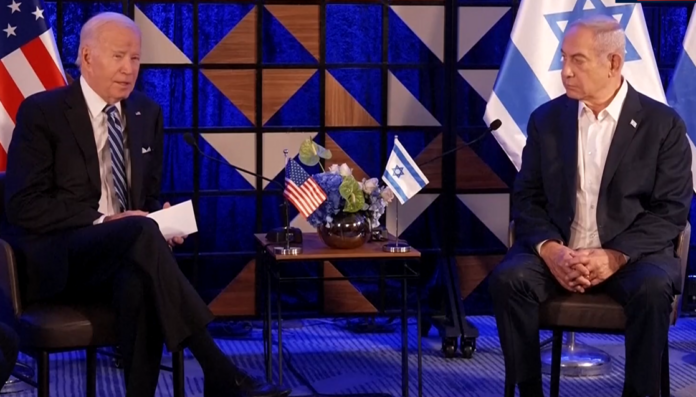 “Voglio che il mondo sappia da che parte stanno gli Stati uniti. Sono state compiute atrocita’ che fanno sembrare l’Isis forse piu’ ragionevole”. Così il presidente degli Stati Uniti Joe Biden nelle dichiarazioni precedenti al suo colloquio con il premier israeliano Benjmain Netanyahu a Tel Aviv. “C’e’ solo una cosa migliore di avere un vero amico come lei, presidente, ed è la sua presenza qui, profondamente commovente”: Lo ha dichiarato il premier israeliano Benjamin Netanyahu incontrando il presidente americano Joe Biden arrivato a Tel Aviv. “Parlo per tutto il popolo di Israele”. Il 7 ottobre è in proporzione come venti volte l’11 settembre”. Lo ha detto il premier israeliano, Benjamin Netanyahu, in dichiarazioni congiunte con il presidente americano, Joe Biden. Sabato 7 ottobre Hamas ha lanciato dalla Striscia di Gaza un inaspettato attacco contro Israele provocando numerose vittime nello Stato ebraico. Biden è arrivato oggi in Israele per confermare il sostegno americano a Tel Aviv. Sembra che l’esplosione all’ospedale di Gaza “sia stata fatta dall’altra parte”. Lo ha detto il presidente americano Joe Biden nell’incontro a Tel Aviv con il premier israeliano, Benyamin Netanyahu. Subito dopo essere atterrato in Israele, il presidente Joe Biden si è diretto in un albergo di Tel Aviv dove parteciperà a una riunione del Gabinetto di guerra israeliano presieduto dal premier Benyamin Netanyahu. Secondo quanto si è appreso incontrerà anche le famiglie degli ostaggi Usa presi da Hamas e condotti a Gaza. Al tempo stesso Biden vedrà Rachel Edri la donna della cittadina di Ofakim, nel sud di Israele, che ha distratto cinque terroristi di Hamas entrati nel suo appartamento finché sono arrivate le forze di soccorso israeliane liberando lei e la sua famiglia