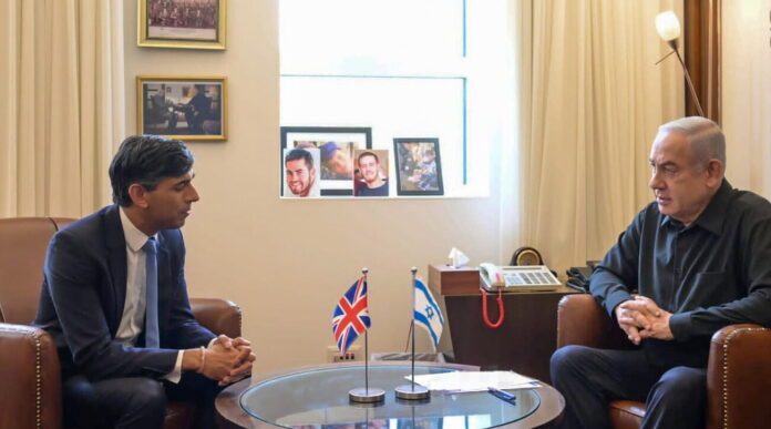 “Voi avete combattuto 80 anni fa i nazisti, ora dobbiamo combattere insieme Hamas che è il nuovo nazismo”. Lo ha detto il premier Benyamin Netanyahu incontrando il suo omologo britannico Rushi Sunak. “E – ha aggiunto – una battaglia per il futuro: da una parte c’è l’asse del male con l’Iran, dall’altra la forza del progresso”. “Questa è la nostra ora buia, l’ora più buia del mondo”. “Sono orgoglioso di essere qui al vostro fianco nell’ora più buia di Israele” ha affermato il premier britannico Rishi Sunak “Saremo solidali con voi, saremo al fianco del vostro popolo. Vogliamo la vostra vittoria”. ”Noi sosteniamo assolutamente il diritto di Israele alla difesa, di recuperare gli ostaggi e di rafforzare la propria sicurezza nel lungo termine” ha ribadito il premier inglese. Netanyahu ha detto di “aver apprezzato gli aiuti militari” che la Gran Bretagna ha messo adisposizione di Israele. Questa – ha aggiunto dopo aver definito la liberazione degli ostaggi una priorità per Israele – è una guerra “contro i mostri del mondo”. Il premier britannico Rishi Sunak, in visita oggi, in Israele, ha concordato con il presidente israeliano Isaac Herzog sulla “importanza” della ripresa degli aiuti umanitari verso i civili palestinesi della Striscia di Gaza, esprimendo “la speranza di ulteriori progressi nella fornitura cruciale di cibo, acqua e medicine”. Lo ha reso noto Downing Street, dopo la conclusione dell’incontro, che precede quello fra lo stesso Sunak e il primo ministro Benyamin Netanyahu. Sunak ha anche elogiato il via libera d’Israele alla riapertura agli aiuti del valico fra Egitto e Gaza. Mentre ha rinnovato le condoglianze del Regno Unito a Herzog per “l’orrenda perdita di vite umane causata dal terrorismo di Hamas”, ribadendo come Londra sia “solidale al fianco d’Israele “e creda “fermamente nel diritto” dello Stato ebraico di “difendersi in linea con il diritto internazionale”.