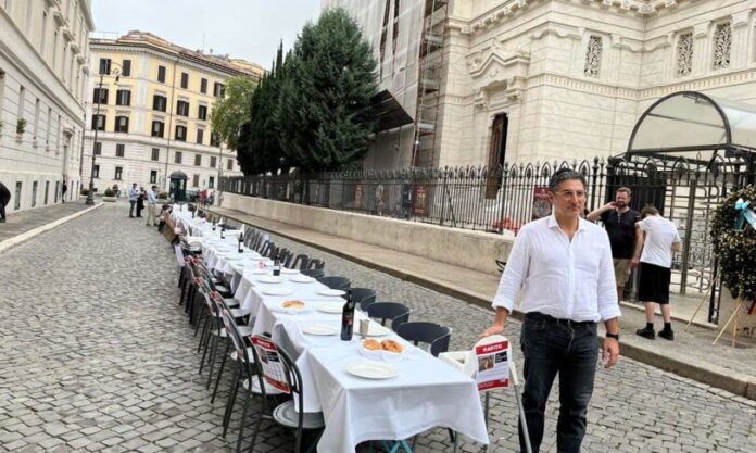 Nel quartiere ebraico di Roma, nella zona del portico d’Ottavia, è in corso una “tavolata” imbandita davanti alla Sinagoga in occasione dello Shabbat, per ricordare come precisa all’AGI un partecipante, “i nostri duecento fratelli israeliani che sono ostaggio di Hamas, che vorremmo fossero qui con noi o nelle loro case”. “Al tavolo dello Shabbat le famiglie ebraiche si riuniscono per celebrare l’inclusione e la tenerezza del calore familiare” – ha detto il presidente della Comunità ebraica di Roma, Victor Fadlun – “questo tavolo ci serve per ricordare che circa duecento persone sono oggi ostaggio nell’inferno dei bunker di Gaza, e il nostro augurio è che queste persone e famiglie oggi imprigionate – ci sono foto di bambini di 4 anni o 9 mesi – possano presto riempire questo tavolo. E che torni la serenità per tutti. Spero e prego che il mondo aiuti Israele, che il mondo condanni questi avvenimenti”. Sulle sedie intorno alla tavolata ci sono i volti e i nomi degli ostaggi, quelli dei bambini sono sui seggioloni. “II 7 ottobre” – si legge nei cartelli – “quasi 200 civili israeliani innocenti sono stati rapiti e portati nella Striscia di Gaza. La loro posizione rimane sconosciuta. Più di 3.000 donne, uomini e bambini, di età compresa tra i 3 mesi e gli 85 anni, sono stati feriti, uccisi, picchiati, violentati e separati brutalmente dal loro cari da Hamas”.