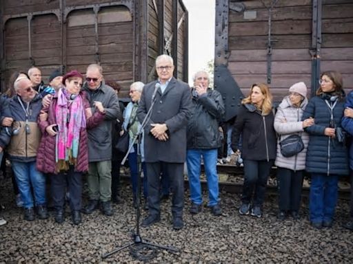 Una pietra e una corona di rose bianche nastrata di nero, in memoria di tutte le vittime dell’odio nazifascista. È il ricordo deposto dal sindaco di Roma, Roberto Gualtieri, insieme ai sopravvissuti alla Shoah, Sami Modiano e Tatiana Bucci, ai piedi di due vagoni sulla rampa di “selezione” di Josef Mengele nel tracciato ferroviario tra Auschwitz 1 e Birkenau, dove esattamente 80 anni fa, il 23 ottobre del 1943, arrivarono i 28 carri con i prigionieri del rastrellamento del ghetto di Roma del 16 ottobre. Due giorni dopo,partirono in 1.023 da Tiburtina. In 800 vennero immediatamente messi a morte nelle camere a gas senza nemmeno passare per i campi di lavoro. A tornare furono solo in 16.
