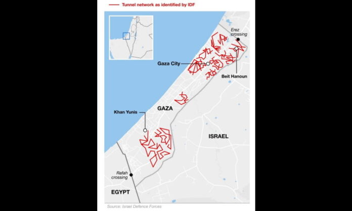 La mappa dei tunnel di Hamas distrutti dall’aviazione israeliana