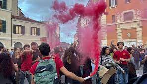 Iresidenti di Spin Time, circa 400 persone, sfilano in corteo contro lo sgombero del palazzo in piazza Santa Croce in Gerusalemme. Accanto a loro centri sociali e associazioni. Il corteo, partito da piazza dei Sanniti, a San Lorenzo, raggiungerà la sede della Prefettura di Roma, a due passi da piazza Venezia. Raccolti dietro lo striscione ‘Basta guerre, vogliamo vivere in pace’, vengono dallo spazio occupato dal 2013 in via di Santa Croce in Gerusalemme a Roma, che ospita oggi circa 500 persone e la redazione di Scomodo. A guidare il corteo, bambini, famiglie e studenti.  “Sarà una bella lotta”, hanno scritto su cartelli rossi i giovani redattori di Scomodo, che all’interno dello Spin Time ha la sua sede. “Da qui siamo partiti e da qui ricominciamo per ridare giustizia al bene comune”. Il corteo di Spin Time fa tappa all’ex Dogana, a scalo San Lorenzo. Qui, gli studenti e le studentesse universitari hanno piantato simbolicamente le tende simbolo della protesta del caro affitti. “La lotta per la casa è la lotta di tutti- ha detto Leone Piva, di Sinistra Universitaria – La situazione per gli studenti è insostenibile. Uno studente fuorisede è  costretto a pagare mille euro al mese per vivere a Roma. La retribuzione media di un lavoratore. Siamo qui, davanti l’Ex Dogana che diventerà uno studentato di lusso per dire che non è così che si risolve il problema, perché così si alimenta il problema”.