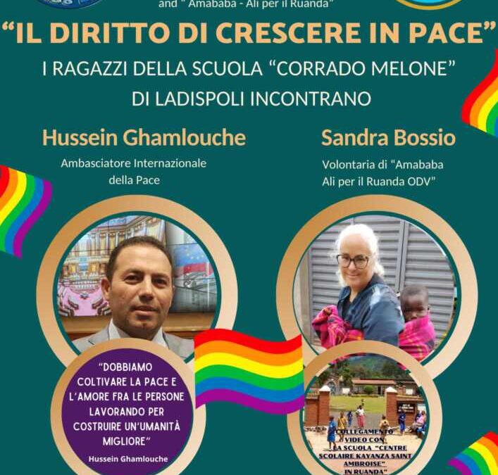 “Martedì 7 Novembre i ragazzi della “Corrado Melone” incontreranno, presso il teatro della scuola, l’Ambasciatore Internazionale della Pace Hussein Ghamlouche e Sandra Bossio, volontaria in Ruanda dell’Associazione Amababa – Ali per il Ruanda e direttrice della biblioteca comunitaria “Le Phare”. Ascolteremo anche le esperienze di Cecilia Turbitosi e Veronica Coraddu, volontarie del Centro Missionario della Diocesi Porto – Santa Rufina. Avremo un collegamento in diretta video con la direttrice e i ragazzi di una scuola in Ruanda. “Il diritto di crescere in Pace”, un obiettivo che bisogna perseguire creando una cultura attraverso la promozione della diversità, dell’inclusione e della tolleranza. La pace e la non violenza devono essere valori fondamentali all’interno delle famiglie, delle scuole e delle comunità. Dobbiamo imparare ad apprezzare le differenze culturali e rispettare gli altri, anche se non condividiamo le stesse opinioni o credenze. Solo allora potremo sperare di creare un mondo migliore, più giusto e pacifico per tutti”. Lo fanno sapere attraverso questa nota Vincenzo Vona, presidente di “Amababa – Ali per il Ruanda O.D.V. “, e Riccardo Agresti, dirigente dell’Istituto Comprensivo “Corrado Melone”.