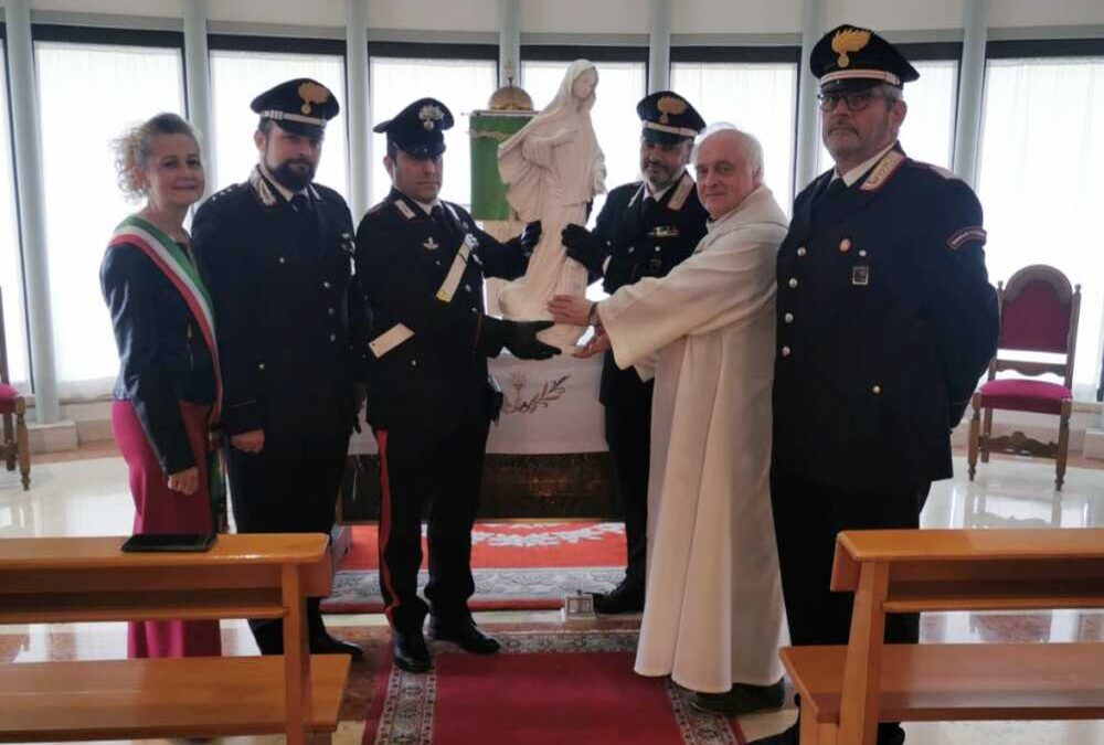 La statua della Madonna di Medjugorje è tornata al proprio posto, all’interno della Chiesa Santissima Trinità di Cerveteri. Questa mattina, alla presenza del Sindaco di Cerveteri Elena Gubetti, del comandante della Compagnia Carabinieri di Civitavecchia Mattia Bologna e del Luogotenente dei Carabinieri della Stazione di Cerveteri Giuseppe Castellitto, la riconsegna nelle mani di Padre Mario, Parroco della Chiesa. A complimentarsi con l’Arma dei Carabinieri e con la Compagnia, è direttamente il Sindaco, che dichiara: “Non appena si è verificato il furto, gli uomini dell’Arma si sono immediatamente attivati per fare luce sull’accaduto. Il ritrovamento, fortunatamente per la Parrocchia e per i numerosissimi fedeli, è stato davvero rapido e da questa mattina la statua è ritornata al suo posto, in Chiesa. Al Comandante di Compagnia Mattia Bologna, al Luogotenente Castellitto e a tutti gli uomini e donne della stazione locale, il mio più sincero ringraziamento per il lavoro svolto e per la dedizione e passione con le quali ogni giorno indossano la divisa al servizio del territorio e dei cittadini tutti”. “Allo stesso modo – prosegue il Sindaco – rivolgo un affettuoso saluto a Padre Mario della Parrocchia Santissima Trinità, perché il suo incarico nel nostro territorio continui a tenere unita la nostra collettività”. “Vogliamo credere – conclude la Gubetti – che si sia trattato di un atto vandalico o di una semplice bravata. Azioni che in ogni caso, condanno con forza e che spero non si ripresentino più. Si è comunque trattato di un gesto che ha offeso fortemente i valori di una intera comunità, trovatasi incredula e smarrita nel non trovare più la statua della Madonna di Medjugorje, dallo scarso valore economico, ma di grande interesse per la devozione dei fedeli”.