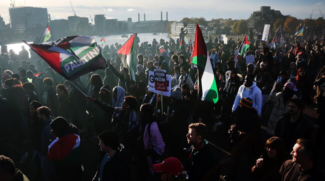 Spintoni e urla, transenne sfondate, lancio di bottiglie e altri oggetti, scontri tra manifestanti e polizia. Tensione alle stelle a Londra nel giorno della grande marcia pro-Palestina che ha portato in piazza centinaia di migliaia di persone. Duemila i poliziotti impiegati, misure di sicurezza imponenti e partecipanti arrivati con pullman da tutto il Regno Unito per quella che è stata definita una delle più grandi manifestazioni politiche della storia britannica.