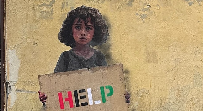 “Sappiamo troppo bene che la nostra libertà è incompleta senza la libertà dei palestinesi”. TvBoy ha scelto una frase di Nelson Mandela per presentare la sua ultima opera intitolata ‘Help’. Il murale, si trova a Roma in zona Borgo Pio e raffigura un bambino palestinese con un cartello in mano e la scritta ‘Help’ con i colori della bandiera palestinese. L’artista ha poi commentato il il post con la frase “I bambini sono innocenti”. Prima di ‘Help’, TvBoy ha dato vita anche ad un’altra opera dedicata a ciò che sta accadendo nella Striscia di Gaza: si trova a Lisbona e ritrae un bambino palestinese e uno israeliano che si abbracciano. “C’è solo una strada che possiamo percorrere: convivere”, ha scritto l’autore.