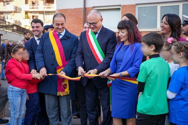 L’istituto comprensivo di via Rugantino 91, in zona Torre Maura, ha un nuovo campo sportivo polifunzionale. Nel cortile della scuola, che accoglie classi dalle materne alle scuole medie, decine di bambine e bambini hanno atteso il sindaco Roberto Gualtieri, intervenuto per l’inaugurazione insieme alla Presidente dell’Assemblea capitolina Svetlana Celli e al Presidente del Municipio VI Nicola Franco. “Sarà un luogo che serve a crescere e avere esperienze educative, a integrare lo studio con lo sport; – ha dichiarato Gualtieri rivolgendosi ad alunne e alunni – tutto quello che facciamo non ha valore se non ci ricordiamo che la cosa piu importante di Roma sono le sue scuole. Dietro a questo campo c’e tanto lavoro e tanto impegno“. Per la riqualificazione del complesso dell’istituto comprensivo Rugantino sono stati previsti investimenti per circa 250 mila euro di risorse comunali. Tra questi, oltre al rifacimento del campo polifunzionale, la messa in sicurezza dei cornicioni della scuola e delle parti esterne piu ammalorate, l’attraversamento pedonale rialzato e la zona con circolazione del traffico limitata a 30 chilometri orari nei pressi dell’ingresso dell’istituto. Altri interventi hanno interessato anche la scuoletta rurale presente in un altro plesso scolastico ma di pertinenza dell’istituto comprensivo Rugantino, che diventerà una biblioteca e un centro polifunzionale. “L’inaugurazione del campo polifunzionale rappresenta un momento davvero bello per l’Istituto comprensivo di via Rugantino. – ha commentato la Presidente dell’Assemblea Svetlana Celli – Un traguardo concreto di un percorso di attenzione verso questa scuola che ho seguito personalmente dal 2020. Dall’ascolto delle segnalazioni e delle esigenze delle famiglie e del personale, all’impegno assunto facendo inserire in bilancio i fondi necessari per arrivare alla realizzazione dell’intervento di manutenzione straordinaria. Oggi quindi consegniamo alle ragazze e ai ragazzi di questo territorio una struttura riqualificata e funzionale alle attività didattiche e sportive. Perché la nostra priorità è garantire spazi e luoghi idonei per la formazione e la crescita dei nostri giovani, dal centro alla periferia”.