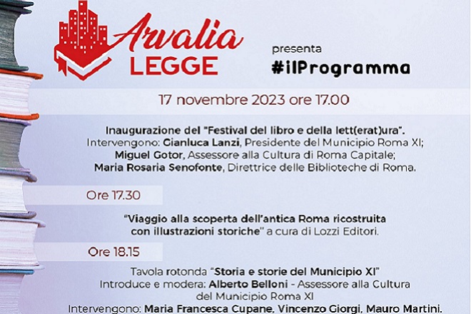 Il 17 novembre alle ore 17, presso la Biblioteca “Renato Nicolini” in via Marino Mazzacurati 76, inaugurazione di “ArvaliaLegge“, alla presenza dell’Assessore alla Cultura di Roma Capitale Miguel Gotor, del presidente del Municipio Roma XI Gianluca Lanzi e della Direttrice delle Biblioteche di Roma Maria Rosaria Senofonte.