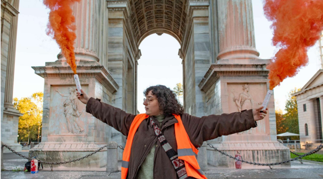 Dieci attivisti del gruppo ambientalista “Ultima Generazione” hanno imbrattato di vernice arancione l’Arco della Pace. L’obiettivo degli eco-attivisti era quello di “riportare l’attenzione sui valori cardine della nostra Repubblica, traditi da un governo che produce armi alimentando conflitti bellici”. La protesta, hanno riferito gli autori, è scattata alle 16:10 e si è conclusa alle 16:15 quando sono arrivate le forze dell’ordine, che hanno portato gli attivisti in questura. Durante il blitz, i dieci hanno anche srotolato un striscione arancione con la scritta “Fondo riparazione”.