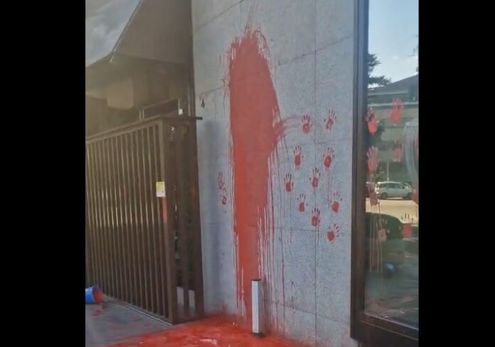 Ultima generazione ha bloccato Piazza Monte Grappa a Roma con un sit in davanti alla sede di Leonardo. Macchiata con vernice rossa la facciata: nel video inviato alla Dire , si nota distintamente una colata di vernice costellata da impronte rosse delle mani.