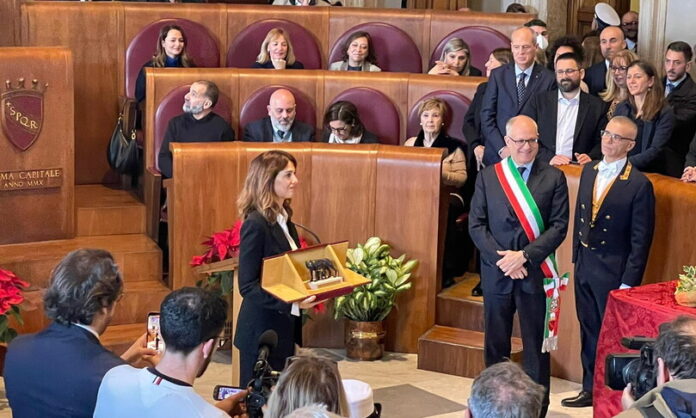 Il sindaco di Roma, Roberto Gualtieri, ha consegnato in Aula Giulio Cesare in Campidoglio la ‘Lupa capitolina’ a Paola Cortellesi per “l’operazione importantissima” compiuta con “C’è ancora domani”, definito dal primo cittadino della’Urbe “un film necessario”. “Un riconoscimento per il suo contributo fortissimo artistico e culturale alla nostra città. Un legame importante sia per la produzione cinematografica sia per quello che ha fatto negli anni per la città: dai viaggi della memoria alla biblioteca del Quarticciolo”, ha sottolineato Gualtieri, “la vogliamo ringraziare e onorare oggi per come ha saputo raccontare la nostra città nei suoi film. Anche parlando di luoghi in cui noi stiamo cercando di intervenire, da Tor Bella Monaca a Corviale e Bastogi. La Lupa che le consegniamo per il suo film ‘C’è ancora domani’: ha compiuto un’operazione importantissima e necessaria per l’impegno civile. Un film necessario”. “Quando i vertici della Festa del cinema mi hanno detto che avremmo inaugurato con un’opera prima in bianco e nero abbiamo avuto un po’ di smarrimento – racconta – e invece ha dimostrato di essere una grande regista”. “Sono onorata di ricevere questo riconoscimento, per quello che abbiamo fatto in questi anni. Insieme a Riccardo Milani o alla mia squadra di sodali, Calenda e Andreotti”, ha dichiarato Cortellesi, “sono onorata perché sono romana e questa è la mia città”. “Ringrazio gli abitanti di Testaccio, unico quartiere dove non avevo ancora girato. Sono qui con la mia famiglia, mia madre e mia sorella maggiore. Mio padre non c’è più ma so che dovunque sia commenterà ridendo con un ‘bella di papa” da vecchio romano”.
