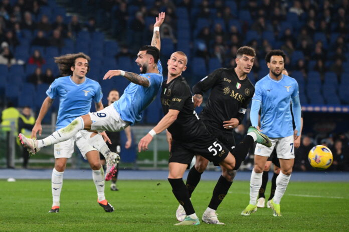 Con Immobile e Zaccagni squalificati, Sarri piazza dall’inizio Luis Alberto a centrocampo e davanti schiera Castellanos affiancato da Isaksen e Felipe Anderson. Senza Osimhen, Anguissa, Simeone, Kvara e Cajuste, Mazzarri invece opta per un 3-4-2-1 con Politano e Zielinski a supporto di Raspadori in attacco, Demme e Lobotka in regia e Di Lorenzo e Mario Rui sugli esterni. Scelte che segnano l’atteggiamento in campo degli azzurri e anche l’avvio del match. Corto e compatto, il Napoli battaglia sulle seconde palle e imposta la gara sui cambi di gioco e sulle ripartenze. Più concentrata sul palleggio, la Lazio invece sceglie di costruire da dietro per guadagnare metri e di innescare direttamente i laterali offensivi per dare profondità alla manovra. Il primo squillo arriva intorno al quarto d’ora da un sinistro alto di Isaksen, poi il match resta inchiodato a centrocampo. Senza guizzi nell’uno contro uno e a ritmo basso la gara non decolla e con pochi spazi a dispozione sono le difese a fare la voce grossa e a tenere tutto in equilibrio. Castellanos protesta per un contatto in area con Di Lorenzo e Ostigard, poi la Lazio prova ad alzare il pressing, ma il Napoli si difende con ordine e il primo tempo si chiude a porte inviolate e senza grandi occasioni. La ripresa inizia senza cambi e con uno spettacolare gol di Castellanos in rovesciata annullato per una posizione irregolare dell’attaccante biancoceleste. Episodio che dà più fiducia e coraggio alla Lazio, apre un po’ gli spazi e accende la gara. Più alta e aggressiva, la squadra di Sarri guadagna metri e prova ad aumentare i giri tra le linee. Il Napoli però non molla e reagisce cercando di alzare Mario Rui e Di Lorenzo e di forzare i passaggi in verticale. Mazzarri toglie Demme e fa entrare Gaetano passando al 3-5-2,. Da una parte Ostigard libera su un cross pericoloso di Isaksen e un sinistro di Cataldi termina a lato di poco. Dall’altra Gila mura un sinistro di Politano in area e un destro al volo di Gaetano non centra la porta. Occasioni che scaldano il match e portano a nuovi cambi. A caccia di soluzioni e più dinamismo, Sarri sostituisce Lazzarri e Guendouzi con Pellegrini e Vecino. Mazzarri invece getta nella mischia Ngonge e Mazzocchi per Raspadori e Mario Rui. Dopo una buona giocata di Isaksen, Ostigard salva tutto su un colpo di tacco di Castellanos. Poi per il finale entrano anche Pedro, Rovella, Lindstrom e Dendoncker. E gli ultimi minuti sono una battaglia su ogni palla. Gollini blocca un colpo di testa di Vecino, poi Pellegrini ci prova dal limite e il match si chiude con un salvataggio ancora di Ostigard sugli sviluppi di un corner. Lazio e Napoli si annullano.