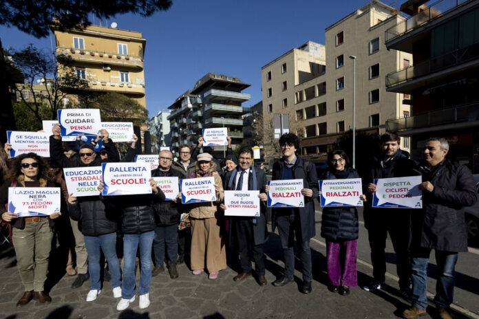 Un sit in per far approvare rapidamente la proposta di legge Strade Sicure e firmare una petizione per avere anche nel Lazio una legge sulla sicureza stradale che sia all’avanguardia in Europa. Lo ha promosso Azione stamattina a piazza Irnerio, nel quartiere romano di Boccea. “Non è il momento dell’attesa ma quello delle soluzioni – ha detto il consigliere regionale Alessio d’Amato, che ha presentato la proposta di legge – insieme possiamo raggiungere lo scopo di ridurre il numero di vittime e feriti sulla strada in linea con gli obiettivi fissati dalle direttive europee sulla sicurezza stradale, dimezzare il numero di incidenti entro il 2030 per arrivare a zero morti sulle strade entro il 2050”. Lo scorso anno le vittime nel Lazio sono state circa 300. Solo a Roma e provincia sono stati 188 i morti – 126 a Roma – e 11.900 incidenti, quasi 15000 feriti; tre gli incidenti stradali ogni ora nella capitale. Il Lazio detiene il record italiano di pedoni uccisi, 73 lo scorso anno, un sesto di tutti i pedoni morti in Italia, solo a Roma 42; 15 i ciclisti deceduti nel Lazio, quasi tutti a Roma. “Abbiamo quartieri eccessivamente congestionati dal traffico, con troppe auto e una cattiva qualità dell’aria”, ha osservato il consigliere capitolino Francesco Carpano. “Lo scopo della nostra inziativa è sensibilizzare l’opinione pubblica e fare realizzare opere necessarie per la sicurezza stradale. Secondo noi le ‘zone 30’ vanno fatte dove necessario”, ha affermato Claudia Finelli, consigliere del XIII Municipio di Azione. Il sit in verrà ripetuto in tutti i Municipi di Roma e nei Comuni laziali. Le associazioni che vorranno essere audite in Regione potranno chiedere di farlo.