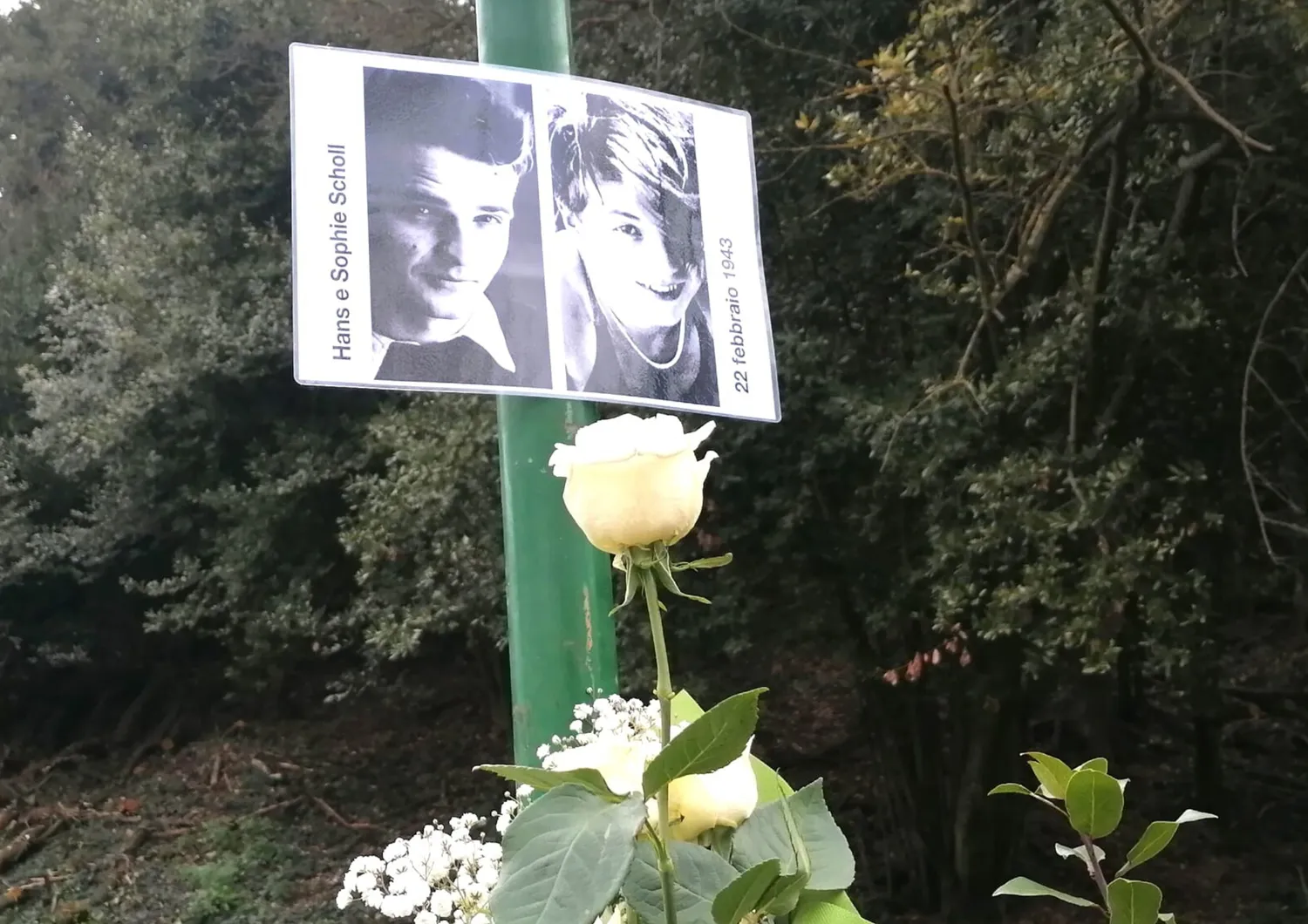 “E’una giornata di sole così bella e devo andare. Ma che importa la mia morte, se attraverso di noi migliaia di persone saranno risvegliate e spinte all’azione?”. Sono le ultime parole pronunciate dalla 21enne Sophie Scholl il 22 febbraio 1943, poco prima di essere decapitata insieme al fratello Hans. Tragica sorte che seguiranno tutti i componenti del gruppo “La Rosa Bianca”, attivo a Monaco di Baviera dal giugno 1942. La loro tenace lotta nonviolenta contro la tirannia nazista – combattuta coraggiosamente in patria, a viso aperto – resta un esempio prezioso e un monito contro le dittature e la follia della guerra. Nell’81esimo anniversario del sacrificio di Hans e Sophie Scholl e degli altri giovani martiri della “Rosa Bianca”, eroi della Resistenza europea – questa mattina l’Osservatorio Sherwood insieme a Retake Sacco Pastore ha organizzato una cerimonia nel viale intitolato ai fratelli Scholl nel Parco di Villa Ada. Hanno partecipato le studentesse e gli studenti della classe V C (Sezione grafica) del Liceo Artistico “Donato Bramante”. Era presente anche Felice Cipriani, scrittore della memoria.
