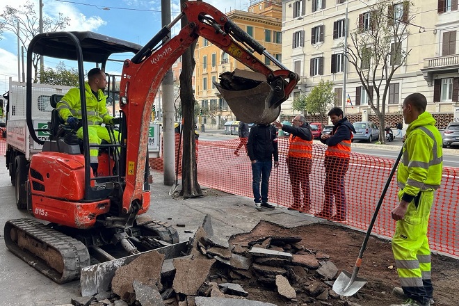 Dopo la riqualificazione del primo segmento di viale Trastevere, il Dipartimento dei Lavori pubblici Csimu sta terminando la riqualificazione anche dei marciapiedi della relativa tratta, in entrambi i sensi di marcia, dalla stazione di Trastevere a via Ippolito Nievo, per una lunghezza totale di 1 km. L’intervento ha un costo di circa 200mila euro a valere sul Bilancio partecipativo e prevede il ripristino della pavimentazione e la manutenzione di griglie e bocche di lupo. “Le lavorazioni sui marciapiedi ammalorati sono ormai alle battute finali – commenta l’assessore Ornella Segnalini –. Lo avevamo promesso, quando a novembre abbiamo effettuato un sopralluogo con il sindaco Gualtieri e gli assessori Alfonsi e Patané. In quell’occasione abbiamo assistito a un intervento combinato in cui ai lavori notturni sulla strada è stata affiancata la potatura delle alberature, a seguito dei precedenti della mobilità sulla linea tranviaria. Nel corso del 2024, grazie ai fondi giubilari, proseguiremo con la riqualificazione in orario notturno di viale Trastevere fino al lungotevere. Sarà un intervento impegnativo conclude Segnalini su una strada complessa di oltre un chilometro, di completo ripristino”.