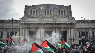 Per la Palestina e “contro il genocidio” che si sta compiendo a Gaza: in circa 15mila si sono radunati a Milano da tutta Italia per partecipare al corteo nazionale contro la guerra. Per le vie della metropoli lombarda hanno manifestato sindacati, antagonisti, associazione dei Palestinesi d’Italia e dei Giovani Palestinesi. La mobilitazione si è svolta senza problemi, anche se si sono registrati momenti di tensione quando una decina di partecipanti, con abiti neri e il volto coperto, si sono isolati all’altezza di piazzale Principessa Clotilde e hanno danneggiato un supermercato con sassi contro le vetrine. Un’agente della polizia locale si trovava su un’auto contro cui sono state lanciate le pietre ed è rimasta ferita alla testa in modo non grave. Altre due auto della Guardia di finanza sono state danneggiate nello stesso frangente. Altri attimi di tensione in piazza della Repubblica dove un gruppo di attivisti, sempre a volto coperto, ha cercato di imboccare via Turati per raggiungere il consolato degli Stati Uniti. I manifestanti hanno poi lanciato oggetti e anche due ordigni incendiari, che non si sono accesi, contro gli agenti in tenuta antisommossa che hanno impedito l’accesso e li hanno fatti indietreggiare. Al di là dei due episodi di tensione il corteo, monitorato da polizia, carabinieri e polizia locale, è giunto a destinazione in largo Cairoli poco dopo le 17. Tra i cartelli esposti anche alcune sagome “insanguinate” di politici, tra cui Giorgia Meloni, il ministro Matteo Salvini, il premier israeliano Benyamin Netanyahu e i ministri Guido Crosetto e Giuseppe Valditara. C’è stato anche chi ha appeso allo zaino un avviso alle forze dell’ordine, dopo ciò che è accaduto venerdì a Pisa: “Per ogni manifestante picchiato, risponderemo tutti assieme e tu poliziotto violento verrai identificato come schiavo dello Stato”. Presente alla manifestazione, a pochi passi da piazzale Loreto, anche l’ex deputato 5 Stelle Alessandro Di Battista. Bandiere di Israele bruciate, fischi alla vista di quella che sventola davanti al Pirellone, sede del Consiglio regionale, ma soprattutto inviti a “fermare il genocidio” sono stati il leitmotiv del corteo milanese. Altre manifestazioni si sono svolte anche in altre città. In Friuli-Venezia Giulia gli attivisti sono scesi in piazza sia a Trieste che a Udine, a Roma è andato in scena un flashmob in piazza del Campidoglio a cui ha partecipato anche il segretario della Cgil nazionale Maurizio Landini. Qui diverse associazioni tra cui Anpi, Acli e studenti hanno sventolato una grande bandiera della pace, mentre a Torino gli studenti del Collettivo di Giurisprudenza hanno fatto sapere di aver presentato un esposto alla Corte penale internazionale dell’Aja “per capire se Netanyahu è solo un premier incapace di difendere il proprio popolo o meriti di essere incriminato per aver deliberatamente ignorato i segnali di pericolo relativi al 7 ottobre”.