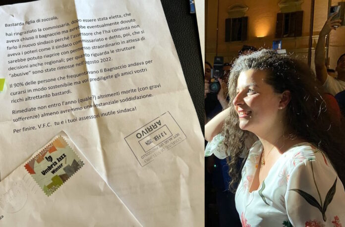 “Bastarda figlia di zoccola, morite con gravi sofferenze almeno avremmo una sostanziale soddisfazione”. È quanto si legge nella lettera anonima recapitata alla sindaca di Viterbo Chiara Frontini. “Nei giorni scorsi – spiega la prima cittadina sul suo profilo Facebook – ho ricevuto questa lettera anonima, che ho provveduto a consegnare alle autorità competenti per tutte le azioni necessarie”. Al centro della missiva ci sarebbe la chiusura e la mancata riapertura del parco termale di Bagnaccio. Il commento della prima cittadina: