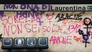 “Sorella non sei sola”, “Meno polizia, più transfemminismo”, “Le streghe son tornate”. E poi la firma, “Aracne”, nome del collettivo femminista protagonista di un blitz che intorno alle 19 si è svolto in alcune stazioni della metro B di Roma: Laurentina, Eur Magliana e Marconi. Pareti, cartelli e seggiolini imbrattati con scritte realizzate usando bombolette spray di colore rosa, le stesse adoperate anche su almeno tre treni, subito portati dagli addetti Atac in un deposito per ripulirli. Alcune delle persone partecipanti al blitz avrebbero avuto il volto travisato da passamontagna. Entravano e uscivano dai treni scendendo di fermata in fermata e lasciavano le loro scritte rosa in ciascuna stazione. Un’altra scritta largamente adoperata è stata “1522”, il numero gratuito, attivo 24 ore su 24 ore, che accoglie con operatrici specializzate richieste di aiuto delle vittime di violenza e stalking (servizio pubblico promosso dal Dipartimento Pari Opportunità della Presidenza del Consiglio). Atac ha immediatamente allertato le forze dell’ordine. Le operazioni di pulizia cominceranno subito, le scritte verranno cancellate nelle stazioni e sui tre convogli, ma il rischio – fa sapere l’azienda – è “di non aver domani a disposizione i treni per il servizio.” L’azione del collettivo femminista si è conclusa in serata in via Marmorata nel rione Testaccio. Qui una cinquantina di donne, dopo il blitz, marciavano insieme cantando. Sono state fermate dalla polizia intervenuta con un blindato, oltre che con decine di agenti. Sono state tutte identificate e la loro posizione è al vaglio.