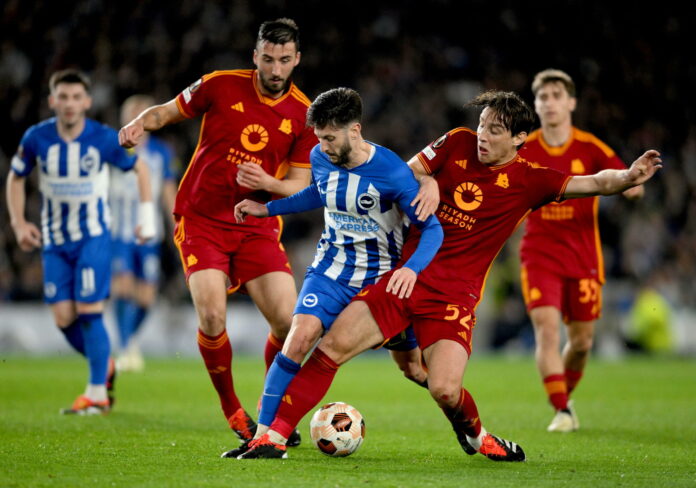 Daniele De Rossi torna da Brighton con la sua prima sconfitta internazionale da allenatore ma anche con la qualificazione ai quarti di Europa League in tasca. Una sconfitta che rimane limitata nelle proporzioni vista la quantità di occasioni avute dai gabbiani di De Zerbi. La prima occasione è della Roma con Azmoun che al 15esimo sfrutta un errore della difesa inglese e conclude fuori. E l’iraniano otto minuti dopo va in rete con una girata acrobatica ma l’arbitro annulla per gioco pericoloso. Il Brighton attacca e al 36esimo va in vantaggio. Wellbeck riceve palla al limite dell’area e lascia partire un destro a giro che si insacca all’incrocio dei pali, niente da fare per Svilar.