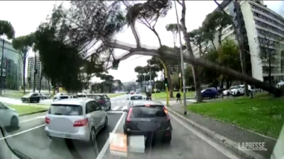 Immagini shock del pino di grosse dimensioni caduto ieri mattina in via Cristoforo Colombo, all’altezza di viale Asia, nel quartiere dell’Eur a Roma. La pianta è finita su due auto in transito e ha ferito un automobilista in modo lieve. Sul posto sono intervenuti gli agenti della polizia municipale del IX gruppo Eur, che hanno chiuso il tratto di strada in attesa dei vigili del fuoco.