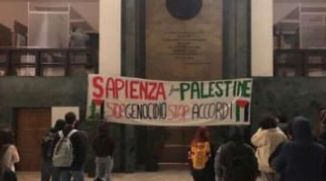 All’università La Sapienza a Roma gli studenti hanno occupato il rettorato per dire “basta alle complicità con Israele”. Lo afferma una nota degli universitari di “Cambiare rotta” su Instagram, i quali esprimono il loro “no alla partecipazione al bando del ministero degli Esteri” e dicono “basta agli accordi con università israeliane e filiera bellica”. La comunità studentesca “riprende l’iniziativa dopo i cortei cittadini e dopo le manifestazioni di solidarietà con la resistenza palestinese”. Il comunicato continua così: “La rettrice e la governance di ateneo finora hanno rifiutato di ascoltarci, ora il Senato accademico di martedì dovrà discutere le nostre rivendicazioni e mettere fine alla complicità con Israele”. Gli studenti chiedono di incontrare la rettrice, Antonella Polimeni, alle 12, prima della convocazione del Senato Accademico, programmata alle 14. Nella nota si legge ancora: “Il rifiuto dell’università di Torino di partecipare al bando MAECI e l’annuncio delle dimissioni del rettore dell’Università di Bari dal suo incarico in Med-Or, fondazione di Leonardo spa, mostrano che il boicottaggio accademico sta dando i suoi frutti e che si può porre fine alla criminale complicità del nostro sistema formativo con la barbarie del genocidio in Palestina e delle guerre”.