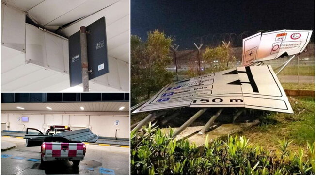 Trapani, violenta tromba d’aria sull’aeroporto: danni e segnali divelti