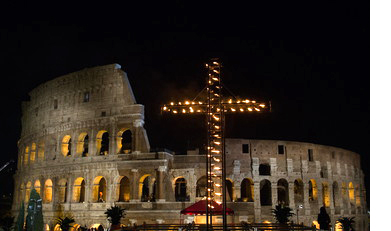Nella giornata di domani è in programma la Solenne Via Crucis al Colosseo, alla presenza di Papa Francesco. Si svolgerà tra le 21 e le 23.30. Sotto il profilo della viabilità, già dalle 13 e sino alle 23,30 ci saranno chiusure al traffico su via dei Fori Imperiali; via Cavour (da largo Venosta a largo Corrado Ricci); via degli Annibaldi e via Nicola Salvi; via Celio Vibenna e via di San Gregorio (solo verso Porta Capena. Direzione Colosseo, la chiusura delle due strade arriverà dalle 15); via Celio Vibenna. Dalle 13, e sino a fine servizio, saranno deviate le linee di bus 51, 75, 81, 85, 87,117 e 118. Qui i dettagli delle deviazioni delle linee di Atac. Dalle 13 e sino a cessate esigenze della giornata è prevista la sospensione della fermata “Colosseo” della metropolitana linea B, con la chiusura al pubblico dei relativi accessi di superficie. Sarà realizzata un’area di rispetto formata dai seguenti piani stradali: piazza del Colosseo; via dei Fori Imperiali – da largo Corrado Ricci a via Labicana; via Celio Vibenna; via di San Gregorio; largo Gaetana Agnesi; via Nicola Salvi – da via Terme di Tito a largo Gaetana Agnesi; via degli Annibaldi – da via Frangipane a largo Gaetana Agnesi; via del Colosseo – da via delle Carine a largo Gaetana Agnesi; via Vittorino da Feltre – da via delle Carine a largo Gaetana Agnesi; Largo Assen Peikov; via del Fagutale – da largo Assen Pezkov a largo Gaetana Agnesi; area archeologica del Colle Palatino; area archeologica dei Fori Imperiali. Per consentire l’accesso dei fedeli all’interno dell’area di rispetto, saranno predisposti 5 varchi di prefiltraggio: 1- Via dei Fori Imperiali altezza Largo Corrado Ricci; 2- Via degli Annibaldi altezza via Frangipane; 3- piazza del Colosseo angolo via Labicana/Nicola Salvi; 4- Piazza del Colosseo altezza via Claudia; 5- Via di San Gregorio angolo via dei Cerchi. All’interno dell’area di rispetto sarà costituita un’area di massima sicurezza 1- via dei Fori Imperiali, altezza Clivio di Acilio; 2- Via degli Annibaldi altezza Ponte Pedonale; 3- Via Nicola Salvi altezza via delle Terme di Tito; 4- Piazza del Colosseo altezza scalette Celio Vibenna; 5- Via di San Gregorio angolo via Celio Vibenna. Divieti di sosta, già dalla notte tra giovedì e venerdì, tra le altre su: via di San Gregorio e via Celio Vibenna; via di San Bonaventura, via della Salara Vecchia, via Clivio di Venere Felice e largo Corrado Ricci. Divieto di parcheggio anche a piazza di Santa Francesca Romana; largo Gaetana Agnesi; via degli Annibaldi, via Nicola Salvi e via del Colosseo; via Vittorino da Feltre; via del Fagutale, via del Monte Oppio, largo Peikov; via delle Terme di Tito, via del Tempio della Pace e via in Miranda.